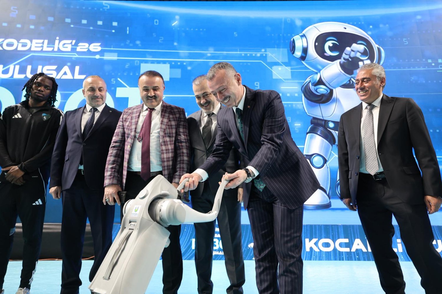İzmit Şehit Polis Recep Topaloğlu Spor Salonu’nda gerçekleştirilen KODELİG’26 Ulusal Robot Yarışması açılış programına Kocaeli Büyükşehir Belediye Başkanı Tahir Büyükakın, İl Milli Eğitim Müdürü Emrullah Aydın, AK Parti Kocaeli İl Başkanı Şahin Talus, MHP Kocaeli İl Başkan Vekili İlhan Kansoy, MHP İzmit İlçe Başkanı İlker Kazan, Kocaelisporlu futbolcular Serhat Öztaşdelen ile Joe Nonge katıldı. Teknolojiye yön veren gençlerle bir araya gelen Başkan Büyükakın yarışmacıları ilgiyle takip etti. Gençleri izlemekten büyük keyif aldığını belirten Büyükakın “Bu yarışmanın kazananı Türkiye ve Kocaeli olacak” dedi.