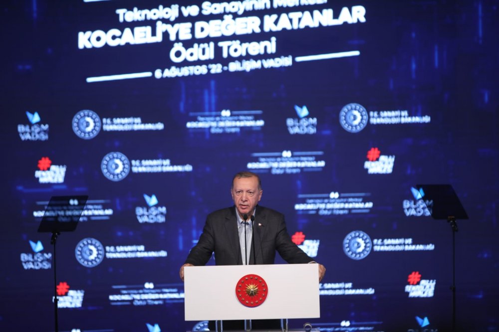 Teknolojik bağımsızlığınızı kazanmadan, ne ekonomik ne siyasi anlamda özgürlüğünüzü temin edebilirsiniz. Koronavirüs salgını sürecinde yaşananlar bu gerçeği çarpıcı şekilde ortaya koymuştur. Dünyanın en müreffeh ülkeleri dahi sağlık çalışanları için maske bile bulamadı. Üretimleri durma noktasına geldi. Türkiye olarak bu zorlu süreçte başarılı bir imtihan verdik. Ekonomik hayatın durmasına müsaade etmedik. Türk firmaları hükümetimizin teşvikleri sayesinde başarı çıtasını yukarı taşıdılar. Geçtiğimiz yıl elde ettiğimiz yüzde 11'lik büyümeyle G20 ülkeleri arasında 1. sıraya yerleştik. Temmuz ayı ihracatımız 18 milyar dolara ulaştı. 2002 yılında sadece 36 milyar dolar ihracat yapan Türkiye'den 250 milyar dolar ihracat yapan Türkiye'ye geldik. Tahıl koridorunun açılmasını sağlayarak Türkiye'nin anahtar rolünü bir kez daha teyit ettik. Fahiş fiyat artışları ve enflasyon nedeniyle vatandaşımızın üzerine biriken yükü hafifletmek için gerekli adımları attık atmaya devam ediyoruz.