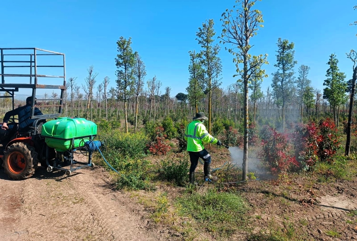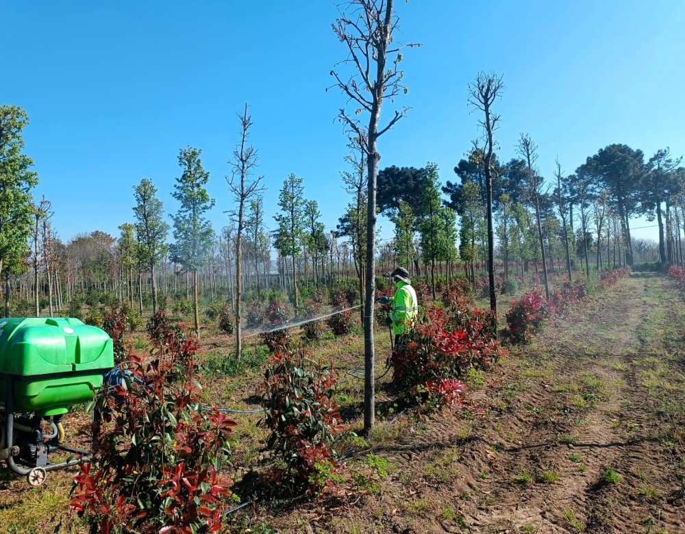 Kocaeli Büyükşehir Belediyesi, üretim fidanlığındaki fidanların sağlıklı gelişimini desteklemek amacıyla insektisit uygulamalarını sürdürüyor.
