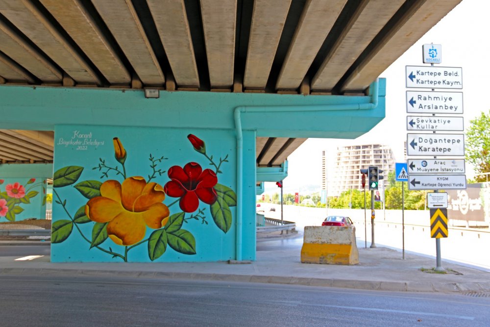 Büyükşehir tarafından Kocaeli genelinde bulunan meydan, bulvar, köprü ve caddelerin duvar zeminlerine, resim uygulama çalışmaları vatandaşlardan ilgi görüyor ve takdir topluyor. Bu kapsamda D-100 Karayolu üzerinde bulunan, vatandaşlar tarafından yoğun olarak kullanılan Kartepe Sakıp Sabancı Köprülü Kavşağı’nın ayaklarına çiçek temalı resim uygulaması yapıldı. Bulunduğu bölgeye görsel anlamda zenginlik katan resim uygulaması, vatandaşlar tarafından da beğeniyle karşılandı.
