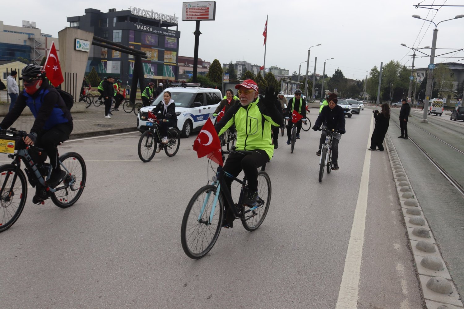 Renkli görüntülere sahne olan etkinlikte katılımcılar, İzmit’in simge noktalarından biri olan Kültür Tepesi’ndeki Atatürk Anıtı’na kadar pedal çevirdi. Anıt önünde gerçekleştirilen törende saygı duruşunda bulunuldu ve hep bir ağızdan İstiklal Marşı okundu.