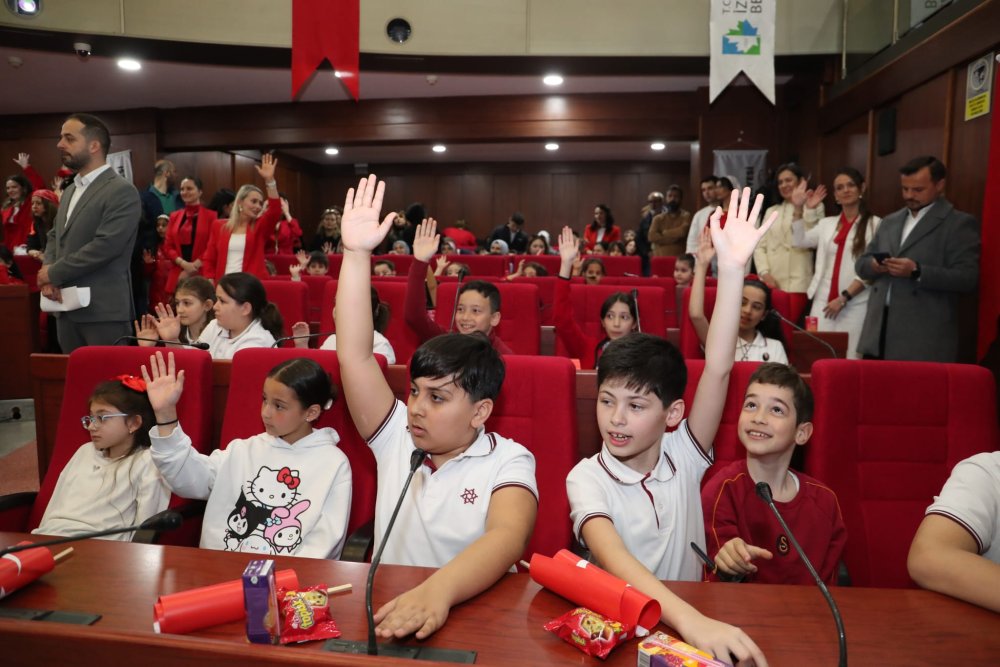 İzmit Belediyesinde 23 Nisan coşkusu bu yıl da çocukların sesiyle yankılandı. Minik öğrenciler meclis sıralarına oturarak hem yönetti hem de kente dair önemli kararlar aldı.