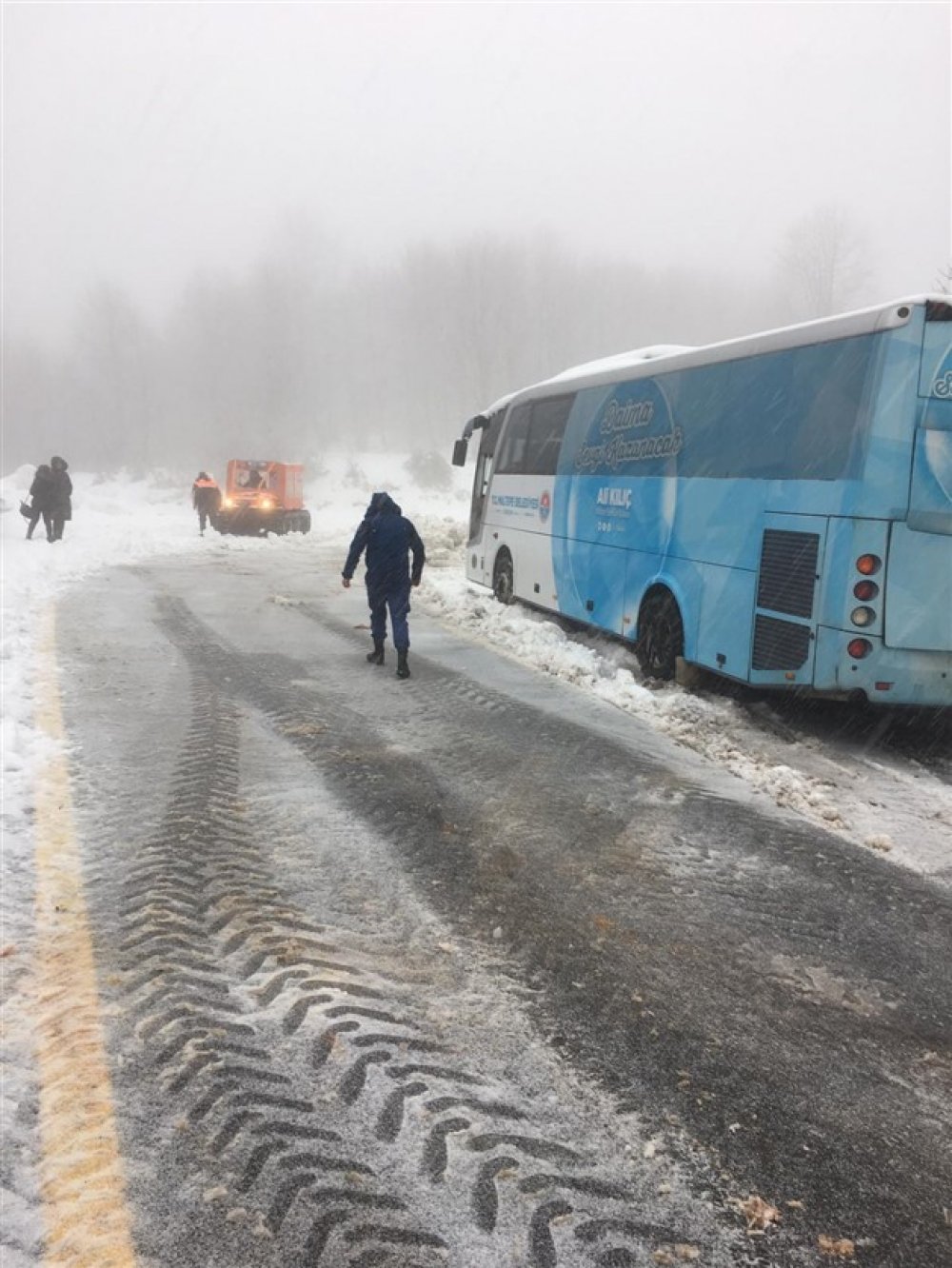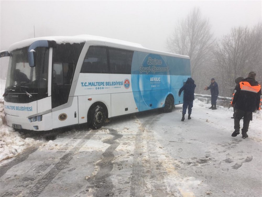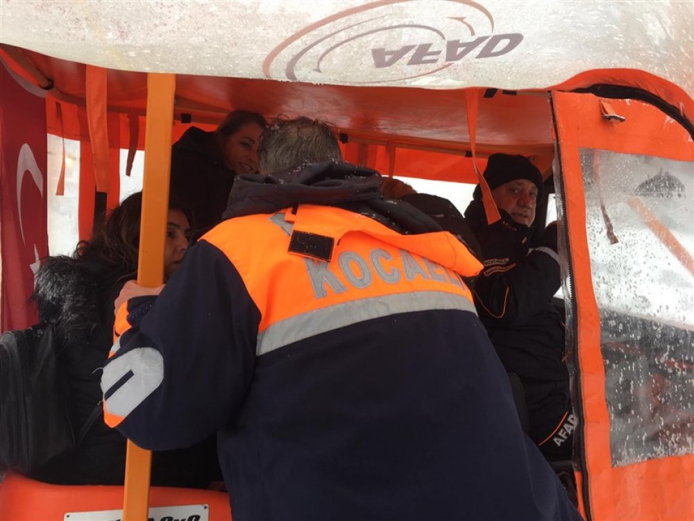 İstanbul Ataşehir’den gelerek Kartepe’ye Derbent yolundan çıkmaya çalışan bir otobüsün kar dolayısıyla yolda kaldı. Kocaeli AFAD, Jandarma, Büyükşehir Belediyesi ve Kartepe Belediyesi ortak operasyon ile yolda kalan yolcular kurtarıldı. Elde edilen bilgilere Ataşehir Kuzey Kolejinin 35 öğrenciyi taşıyan otobüse ulaşmaya çalışırken İstanbul Maltepe Belediyesine ait Elazığlılar Derneği Hanım Komisyonunun 40 üyesini taşıyan bir başka otobüsün de yolda kaldığı.