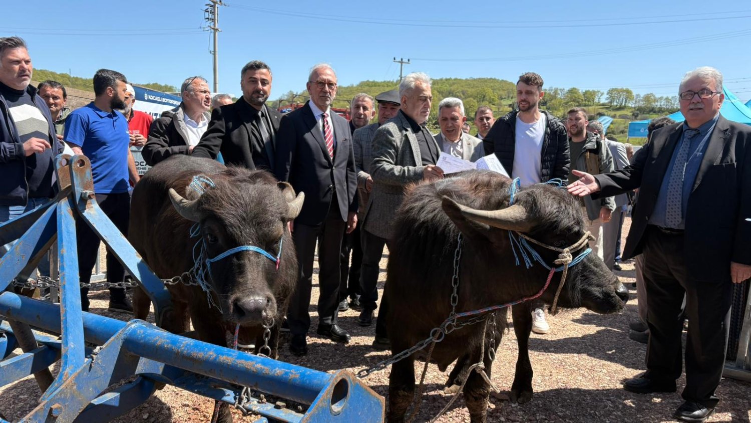 Kandıra Babaköy Mahallesi’nde düzenlenen törene Kocaeli Büyükşehir Belediyesi Koordinatörü Abdullah Köktürk, Kandıra Belediye Başkanı Erol Ölmez, Muhtarlık İşleri Dairesi Başkanı Uğur Şahin, Kandıra Ziraat Odası Başkanı Erdal Çetin, İzmit Ziraat Odası Başkanı Yusuf Karaaslan, Kocaeli Manda Yetiştiricileri Birliği Başkanı Niyazi Yelkencioğlu, birlik ve kooperatif başkan ve yöneticileri ile muhtarlar ve üreticiler katıldı. Kocaeli Büyükşehir Belediyesi Koordinatörü Abdullah Köktürk, kırsal kalkınmaya yönelik çalışmaların sürdüğünü belirterek, “Kandıra başta olmak üzere Kocaeli genelinde üreticilerimize destek vermeye devam ediyoruz. Kırsal kalkınma ve sürdürülebilir tarım hedefleri doğrultusunda hayvancılık projelerine önem veriyoruz. Kandıra’mızın meşhur mandası inşallah eski günlerine kavuşacak” ifadelerini kullandı.