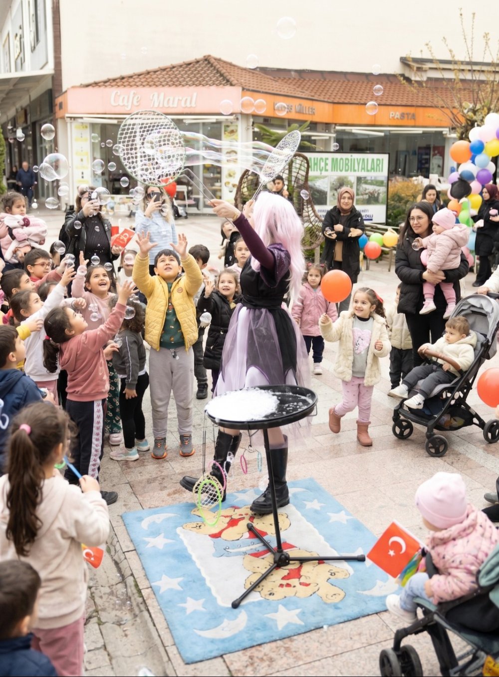 Bubble show gösterisi büyük ilgi görürken, pamuk şeker ve popcorn ikramları etkinliğe ayrı bir renk kattı.