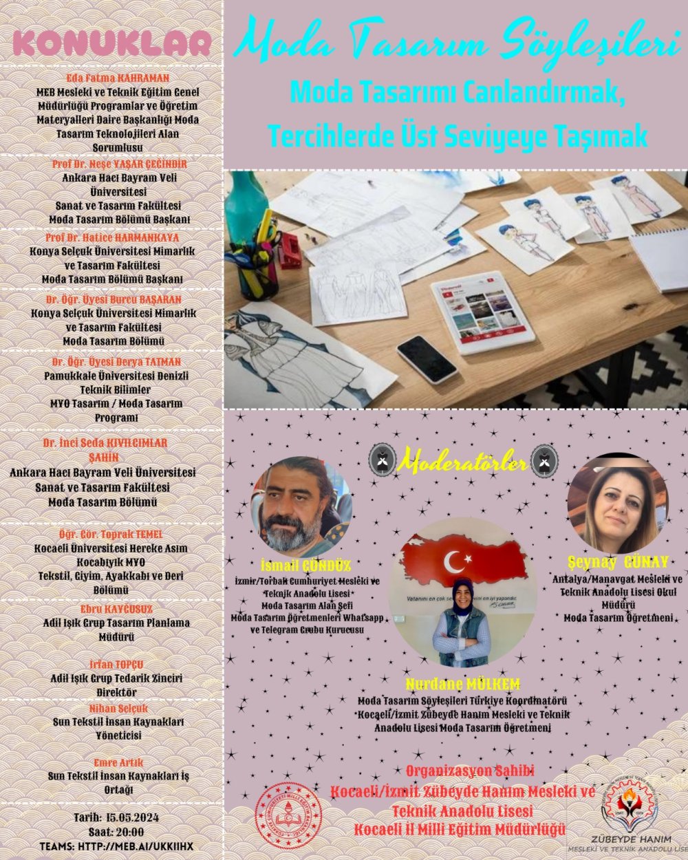 Zübeyde Hanım MTAL olarak moda akademisyenleri sektörü Türkiye’nin birçok ilinden Öğretmen ve öğrencileri bir araya getirerek moda tasarım söyleyişlerini gerçekleştirdi.